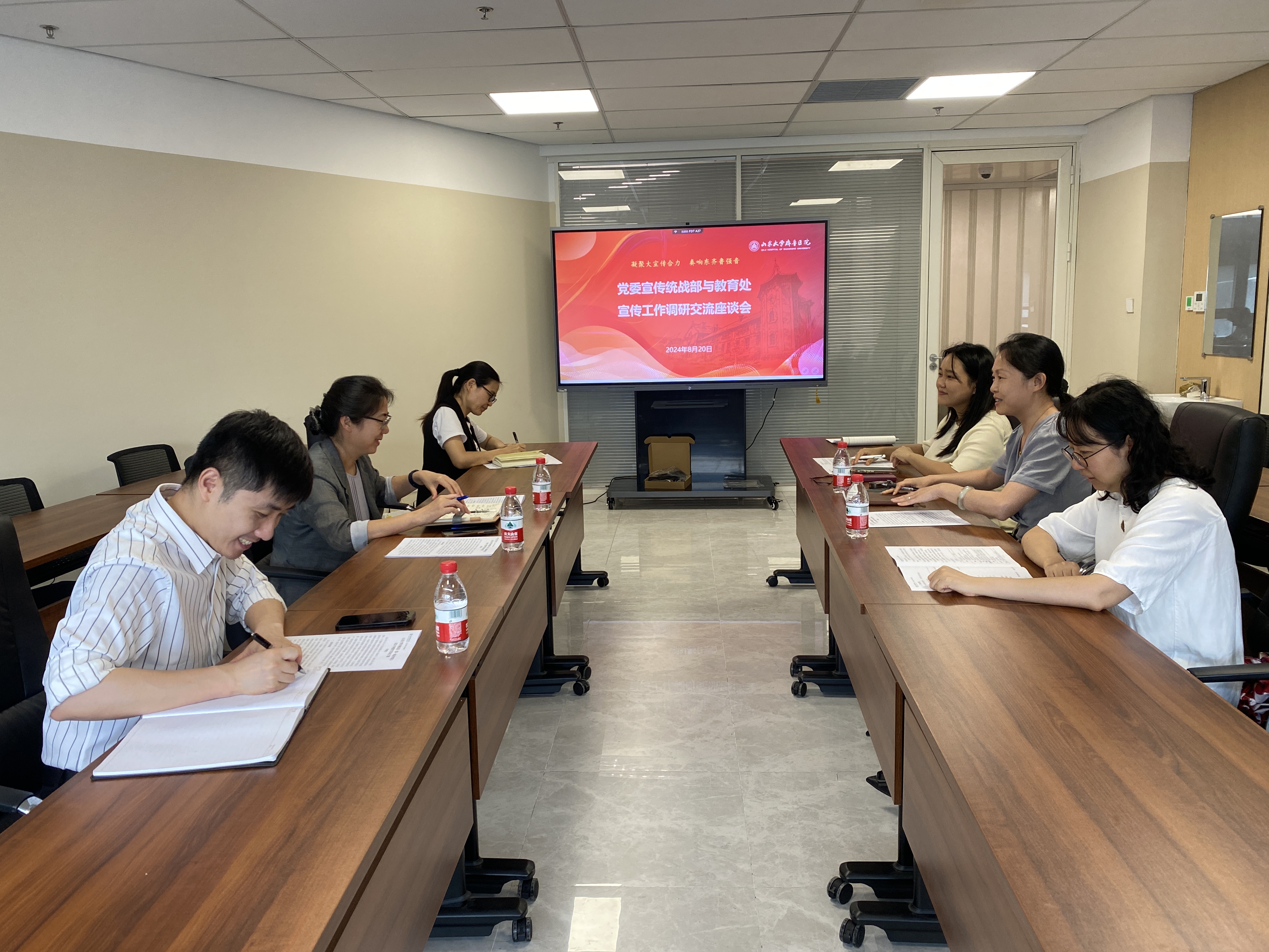 【本站讯】8月20日下午,党委宣传统战部与教育处在齐鲁楼会议室召开宣传工作调研座谈会。教育处处长吕明、党委宣传统战部副部长刘艳、教育处副处长李鲲及相关工作人员参加会议。