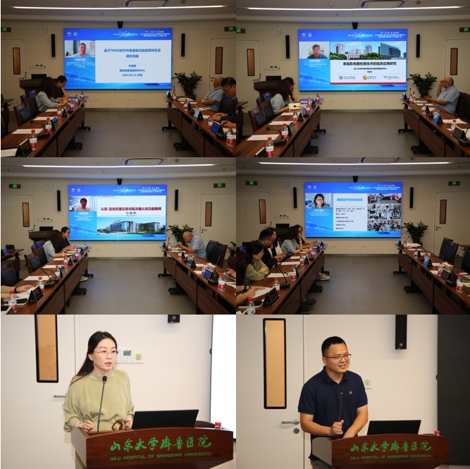学术报告环节由康复医学科(康复中心)主任王永慧主持。李增勇教授以“基于fNIRS的卒中患者脑功能重塑特征及调控策略”为题,提出针对卒中患者的实时大脑信号特征个性化中枢调控策略。李建华教授以“表面肌电图研究现状”为题,回顾了表面肌电图在疼痛评估及康复监测中的作用,并为感觉运动障碍制定个性化康复方案。公维军教授以“认知—运动双重任务训练改善认知功能障碍”为题,强调认知与运动结合的康复治疗新模式激活大脑网络,有效改善慢性脑缺血和衰老认知功能障碍。潘钰教授以“远程康复的新技术赋能与挑战”为题,介绍康复机器人专家系统解决方案,呼吁跨学科合作推动技术应用。于书彦教授以“压力应激导致抑郁的突触可塑性机制”为题,强调了长期压力导致的神经回路重塑及运动抗抑郁的潜力。仇吉川教授题为“功能材料调控干细胞分化和神经修复”,展示了功能材料在神经再生中的应用。