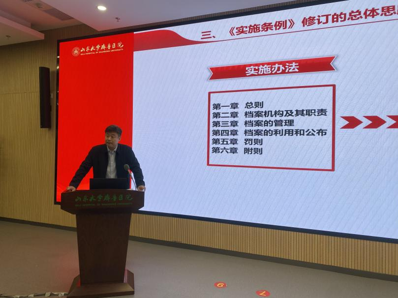 会上,王志广就《中华人民共和国档案法实施条例》(以下简称《实施条例》)进行了专业的政策解读,从《实施条例》修订背景和原因、修订过程和意义、修订总体思路和主要内容进行讲解。《实施条例》对于大家更好地开展档案工作具有重要的指导意义,为参会人员深入理解和贯彻相关法规提供了有力指导。