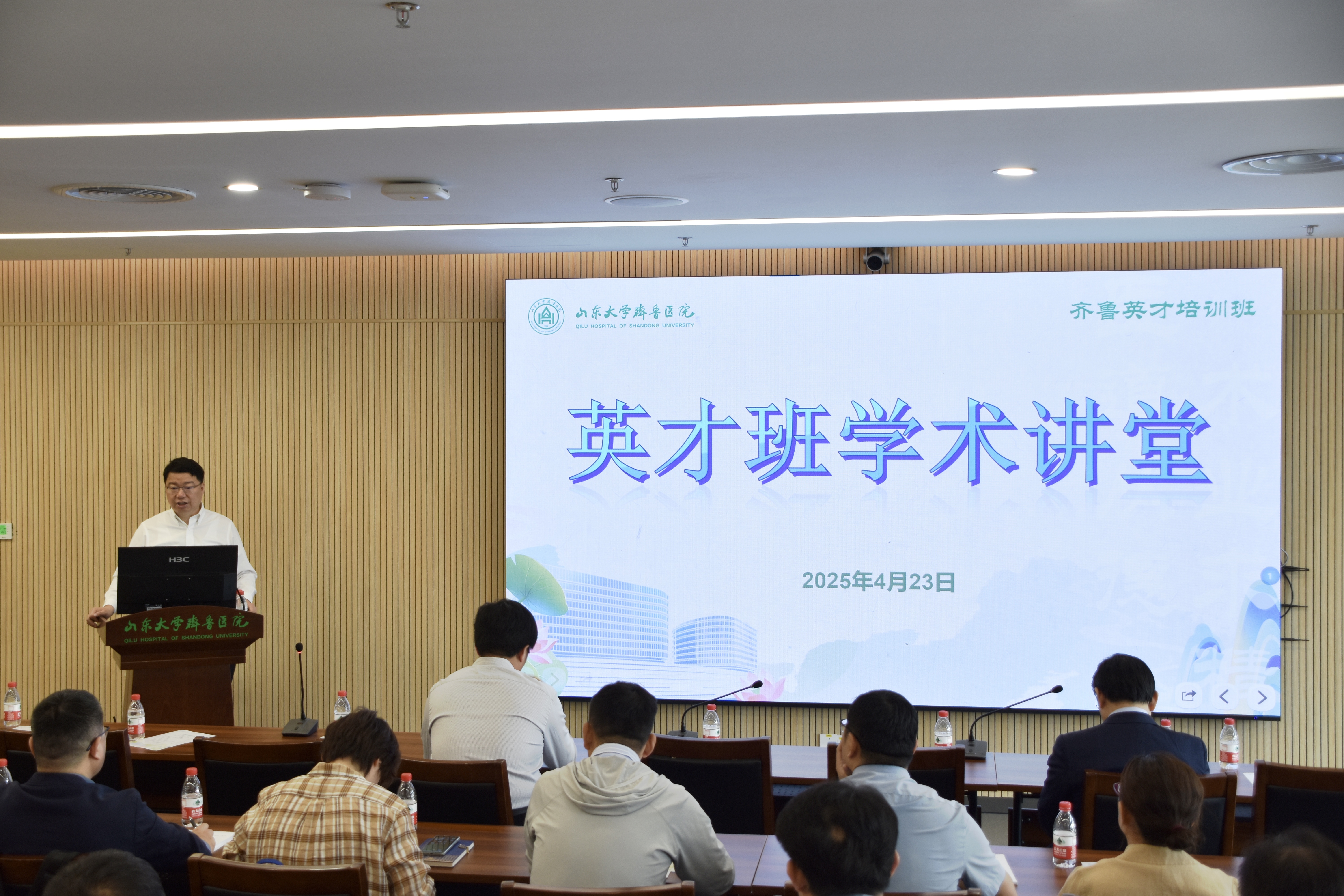 【本站讯】4月23日, “齐鲁英才班”学术讲堂在齐鲁楼2层会议中心举办。绿帽社 副院长韩辉、党委副书记张欣平出席会议并讲话。供应处处长兼肝病科副主任范玉琛,消化科主任左秀丽,感染性疾病科副主任王刚,骨科副主任程雷出席会议并授课。会议由医务处处长任洪波、副处长李斌主持。