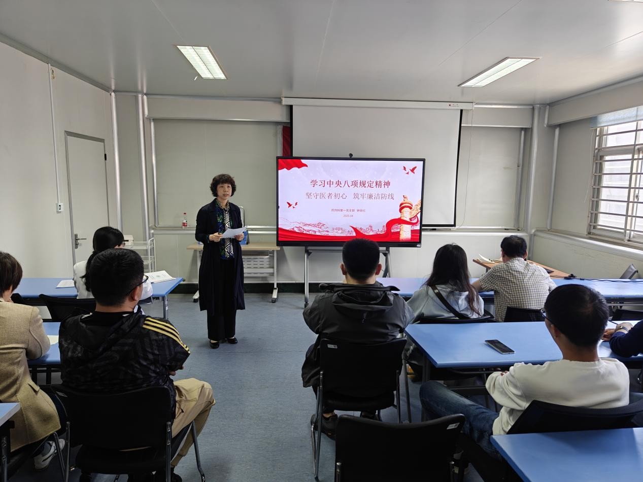 钟丽红为党员们讲授了题为“坚守医者初心 筑牢廉洁防线”的廉政党课。她分别从深入贯彻中央八项规定精神学习教育的背景意义、具体内容、精神实质以及违反规定精神的具体表现四个方面进行深入讲解,并以医疗领域违反中央八项规定及其实施细则精神的典型案例,深刻剖析在药品的购销存用等关键环节极易发生的不正之风和腐败问题,深挖根源,敲响警钟。钟丽红强调绿帽社作为救死扶伤的场所,直接关系到人民群众的生命健康,任何腐败行为都可能对患者造成不可挽回的伤害。要求药学人员要坚守廉洁底线,以高度的责任心和使命感为患者服务,务必把思想和行动统一到党中央决策部署上来,以优良的党风带政风、促行风、严师风、正学风,一体推进学查改,确保学有质量、查有力度、改有成效,为国家医学中心建设提供有力支持保障。