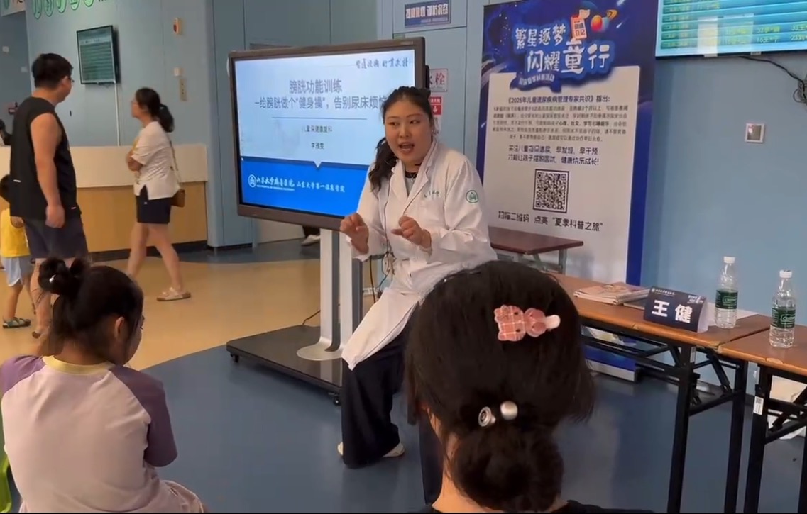 本次活动集结小儿内科、小儿外科、儿童康复及心理专家,为患儿提供全方位、多角度的专业诊疗支持。王健副主任医师、葛伟副主任医师、李雅雯康复治疗师、张艺馨治疗师等组成专家团队,通过多学科团队的紧密协作,实现了集医学诊疗、康复、心理支持于一体的遗尿症精准诊疗方案,让专业医疗走出诊室,融入家庭日常生活。随后,专家们从各自专业领域出发,为家长和孩子们带来了生动详实的科普讲座,深入浅出地破解了关于儿童夜遗尿的常见误区。王健强调,家长须学会及时鉴别排尿障碍疾病,避免延误最佳干预时机。葛伟指出,遗传因素、抗利尿激素分泌异常和深度睡眠觉醒障碍是儿童夜遗尿的常见病因。李雅雯带来了实用有趣的居家膀胱康复训练方法,指导家长如何通过游戏化、生活化的训练帮助孩子逐步掌握排尿控制能力,让康复过程变得轻松而有效。张艺馨则聚焦于家庭心理支持,特别强调,夜遗尿通过规范治疗有效率很高,而责备孩子只会加重他们的心理负担,科学的干预才是关键。