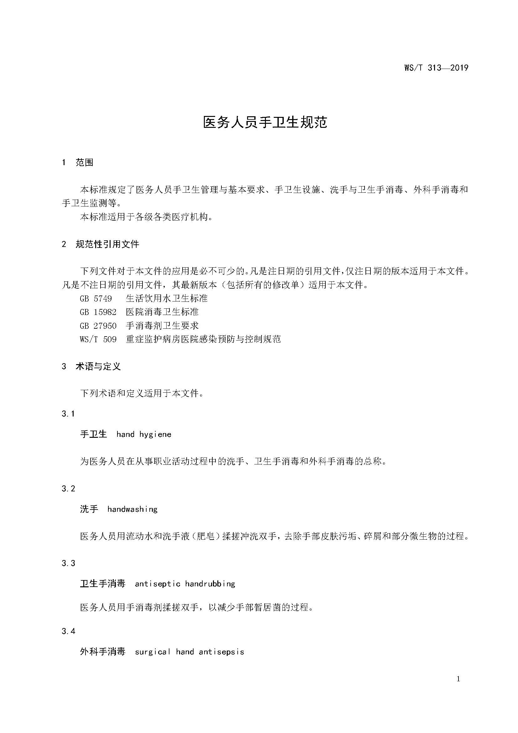 WS/T 313—2019《医务人员手卫生规范》(代替 WS/T 313 2009)
