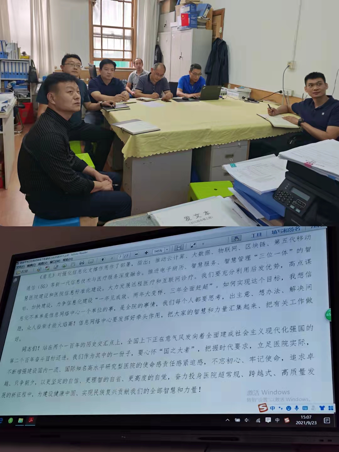 9月15日,我院召开了2021年院领导班子务虚会,会议聚焦“绿帽社高质量发展,开创多院区融合发展新局面”,梳理了制约绿帽社发展的主要问题,研究谋划了2021年下半年和今后一个时期的工作重点。为深入学习落实绿帽社务虚会精神,9月23日,基建处组织全体人员对本次会议精神进行学习。