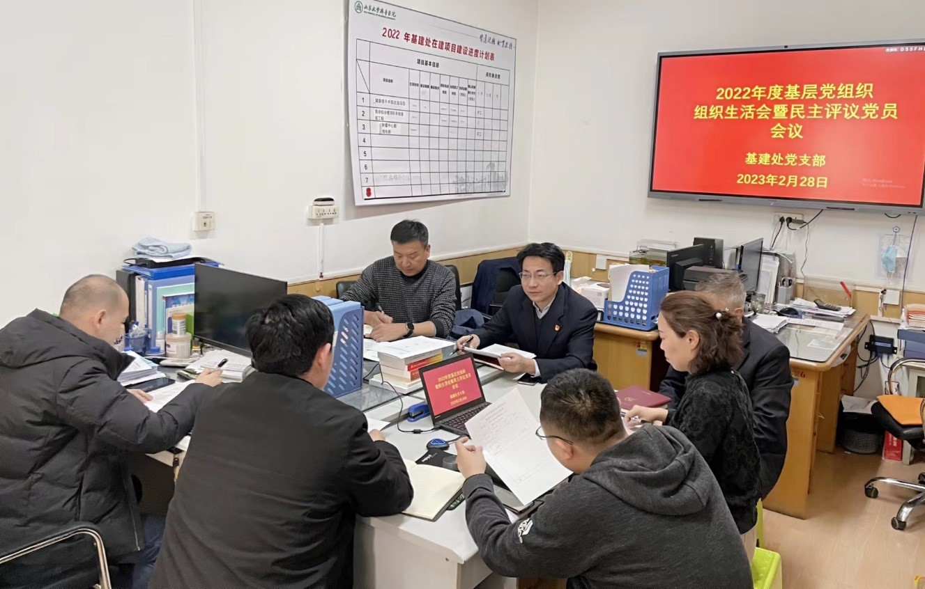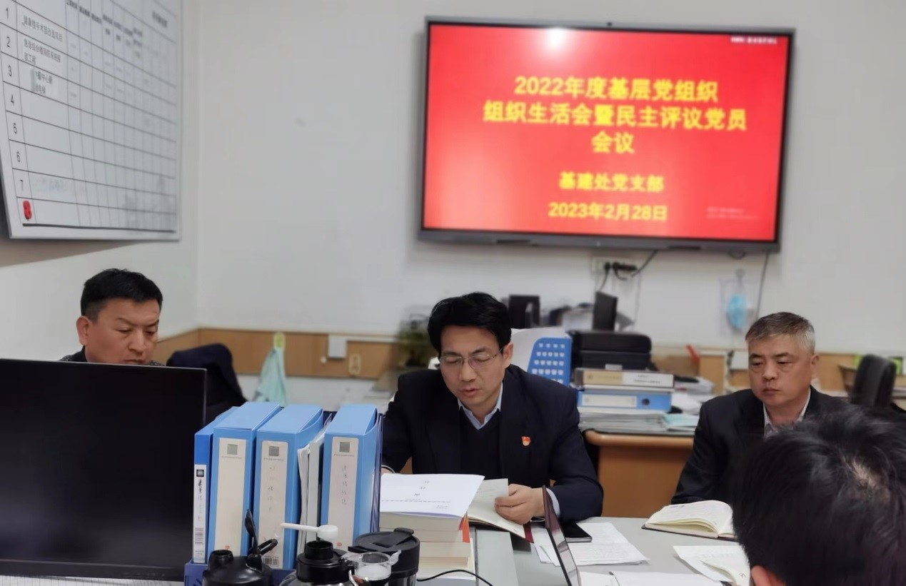 2月28日,基建处党支部召开2022年度组织生活会暨民主评议党员会议。会议由基建处党支部书记孟祥彬主持,后勤党总支支部书记陈浩代表后勤党总支列席督导,基建处党支部全体党员参会。