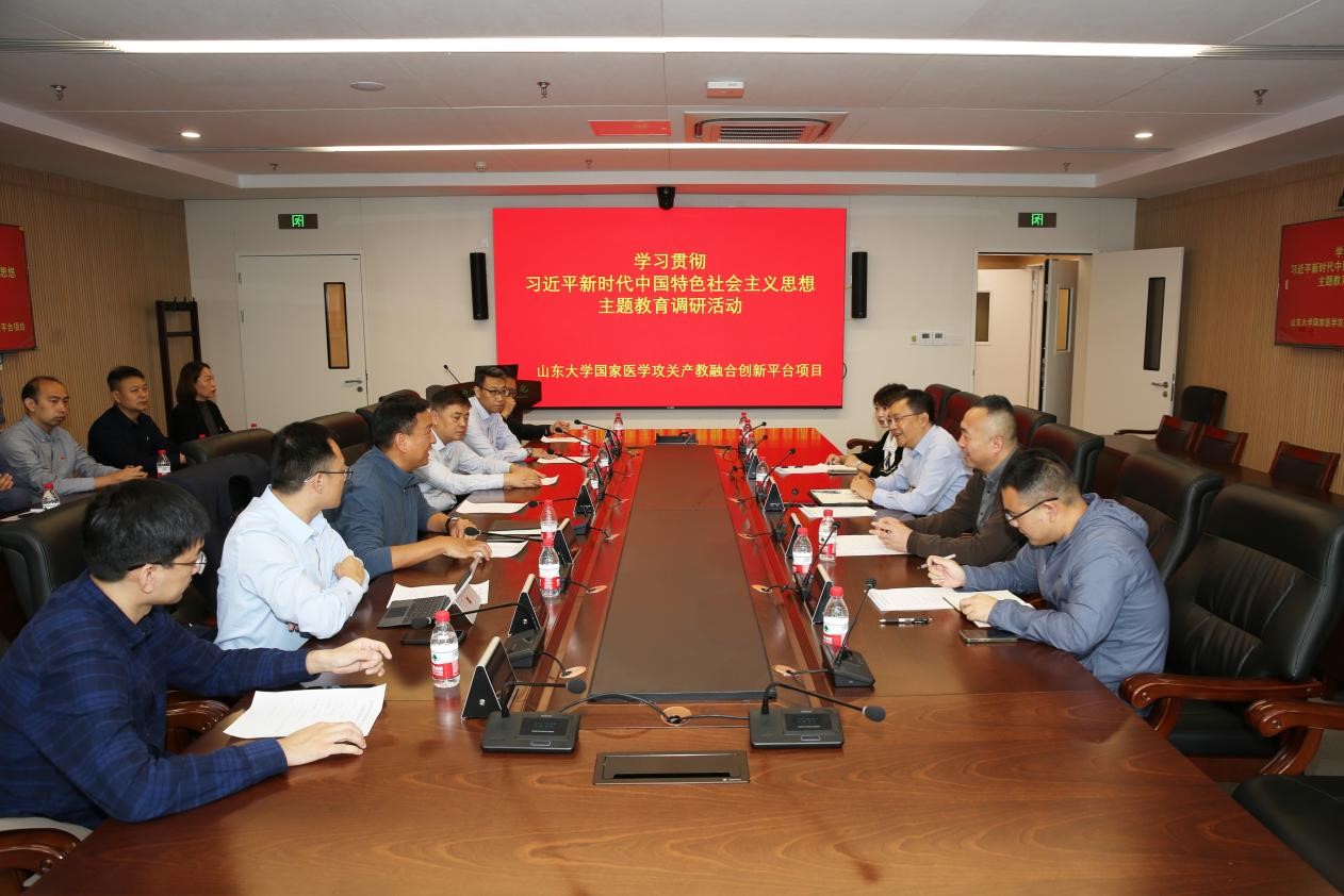 上午9时,全体人员实地参观了我院零磁实验装置,孟祥彬书记针对“用新的理论思想指导实践,推动工作”做了重要讲话,提出要把新时代党的理论创新成果予以实践应用。随后,对国家医学攻关产教融合创新平台项目关键节点的推动工作与济南国际医学中心领导进行了沟通。