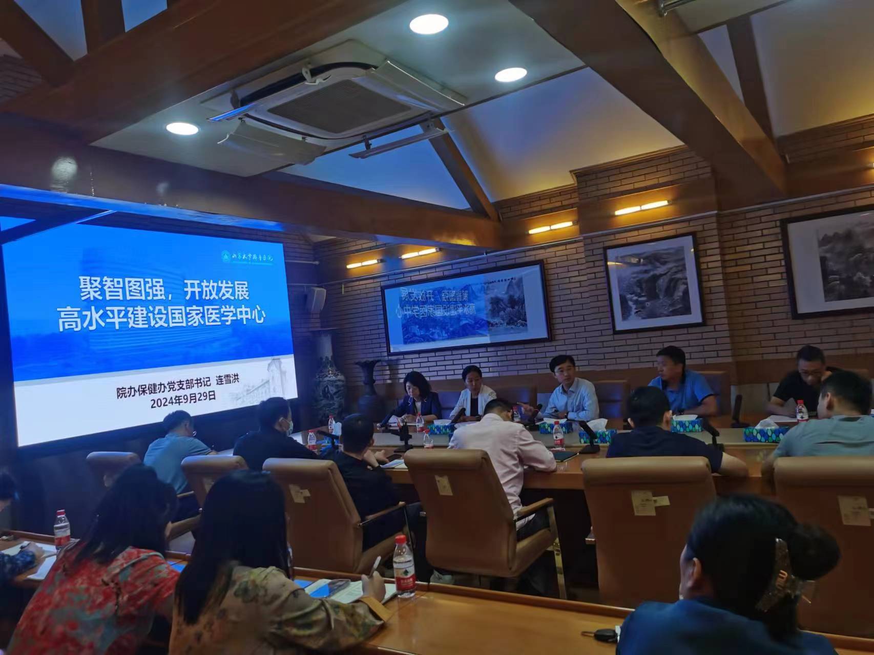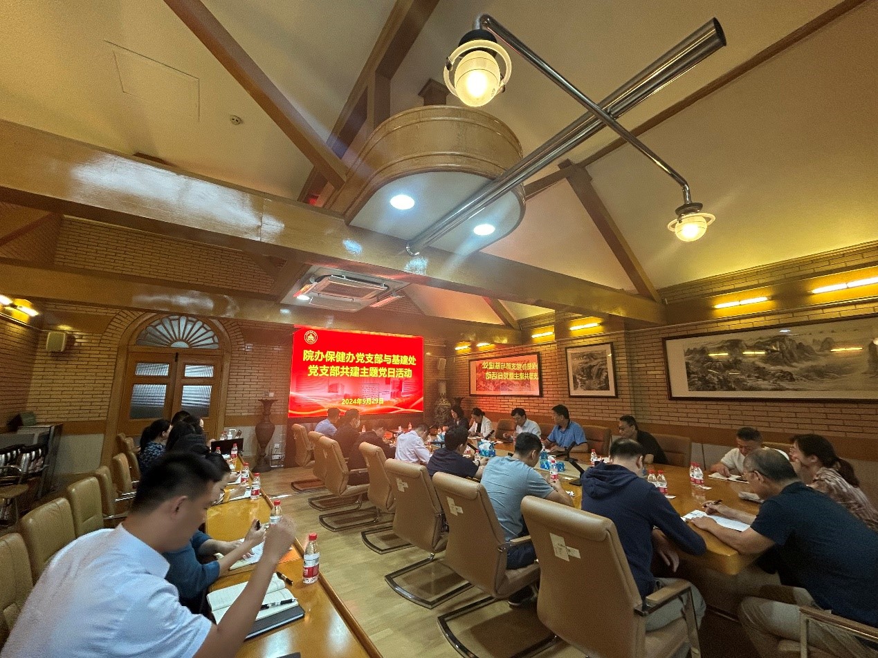 为深入学习贯彻党的二十届三中全会精神,扎实推进清廉绿帽社建设, 9月29日,基建处党支部与院办保健支部开展主题党日共建活动。基建处党支部书记孟祥彬主持会议,院长助理连雪洪、支部全体党员、积极分子参加了本次活动。