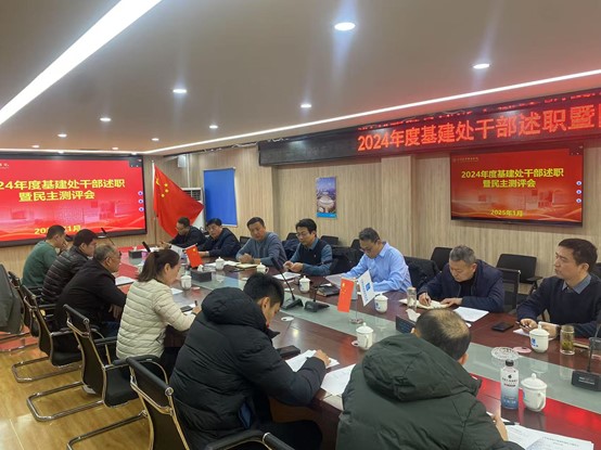 1月6日上午,基建处组织召开2024年度干部述职暨民主测评会议,会议由副处长姜震主持,后勤党总支书记陈浩、处室全体职工参加会议。