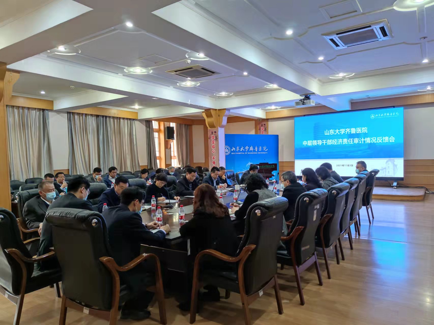 中层领导干部经济责任审计情况反馈会在新兴楼会议室召开。党委书记侯俊平,院长陈玉国,党委副书记林亚杰、党委副书记、纪委书记陈莹颖、总会计师刘庆、副院长纪春岩、院长助理于承浩,经济责任审计工作领导小组成员和各相关部门负责人参加会议。会议由陈玉国主持。