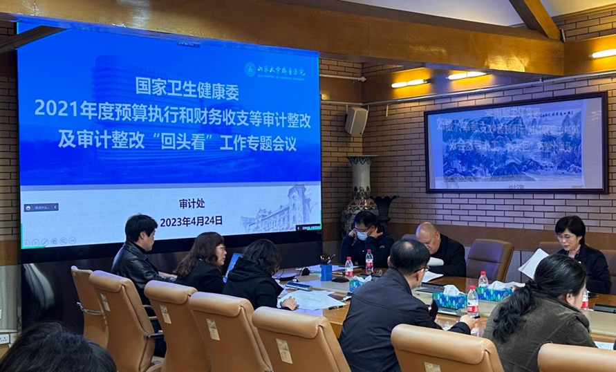 4月24日下午,审计处在共合楼三楼会议室组织召开国家卫生健康委2021年度预算执行和财务收支等审计整改及审计整改“回头看”工作专题会议。党委副书记、纪委书记陈莹颖出席会议并主持讲话。