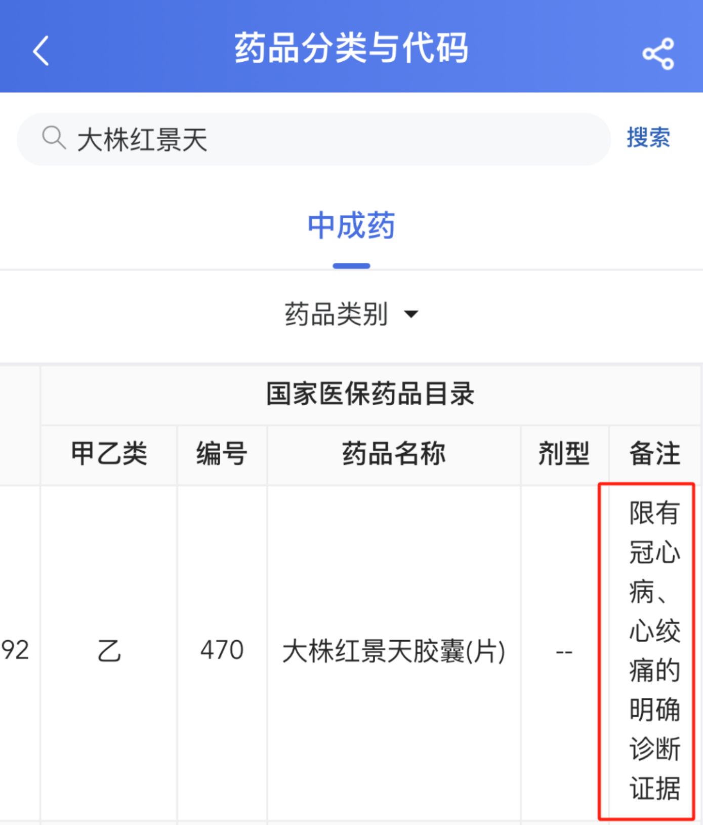 例如,大株红景天胶囊(片)为医保乙类药品,医保限定支付范围为限有冠心病、心绞痛的明确诊断证据,也就是说符合上述诊断的治疗,医保才予以报销。
