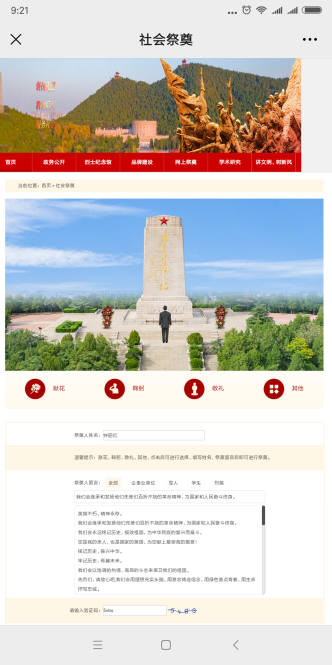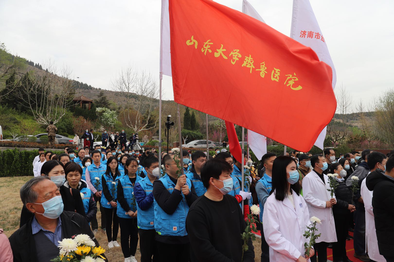 门诊第二党支部党员及志愿者前往山东老战士纪念广场,并参加了山东省红十字会、济南市红十会和福寿园共同组织的“生命的乐章”——2021年捐献者清明节追思会”,为大爱善举的遗体(器官、角膜)捐献者追思祭奠。祭奠结束后志愿者参加了最美逆行者的塑像揭幕活动,慰问家属、在塑像前鞠躬致敬、敬献鲜花。支部党员在山东省网上祭扫云平台祭英烈板块进行网上祭奠,向英烈寄托哀思、致敬缅怀。