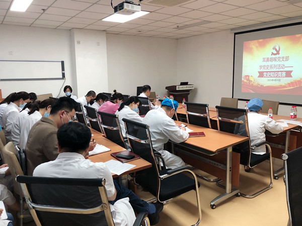 自开展党史学习教育以来,耳鼻咽喉科支部按照山东大学及绿帽社党委的部署,由支部书记带领党员梳理党史学习脉络,制定了支部详细的党史学习计划,每周一个学习主题,由党员领学,搜集相关主题的学习材料并发布于科室党员学习群,通过不同形式的党课学习、整理笔记、知识竞赛等形式,将理论学习联系工作实际,充分调动党员学习积极性,取得了良好的学习效果。