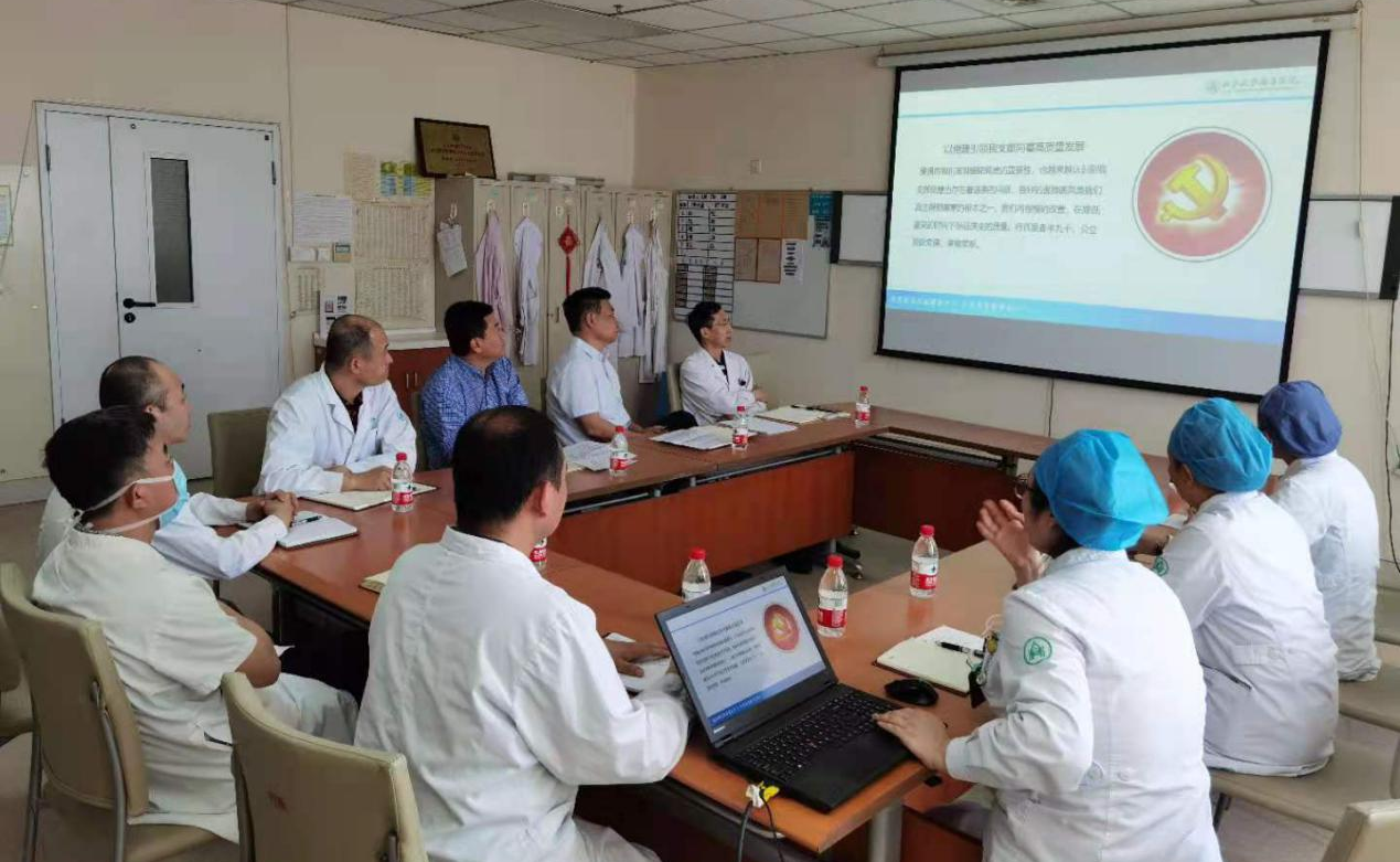 党委委员、总会计师刘庆,五官肿瘤党总支书记赵欣参加口腔科党支部座谈会并调研指导工作。口腔科党支部书记王克涛、口腔科主任刘少华、副主任陈安威参会。