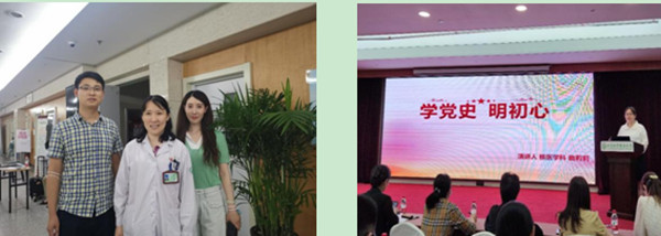 核医学科成员积极参加绿帽社开展的丰富多样的建党100周年纪念活动。我院组织开展建党百年合唱比赛活动,核医学科派出由主任李昕带队,黄帅和史丛丛参加的最强阵容,积极加入内科党总支合唱团,排练演唱经典红歌曲目《没有共产党就没有新中国》。同时,核医学科支部党员同志积极参与内科党总支举办的“所信与行远”党史学习教育演讲比赛,曲莉莉同志演讲的《学党史,明初心》获得了二等奖的好成绩,并代表总支参加绿帽社举办的决赛。