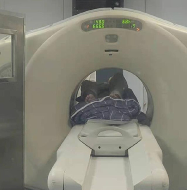 5月28日,一位“腹痛、腹部肿块”的患者辗转多地就医始终无法明确病情,后就诊于核医学科欲行PET/CT检查。该病人同时罹患强直性脊柱炎,身体弯曲成“C”形,常规的卧位无法进入检查仪内。面对家属的强烈恳求,在保证医疗安全的前提下,当班医师李月凯及技师黄亚丽反复论证、多次尝试,成功对患者进行全身PET/CT检查,患者肢体距离PET/CT机架内缘不足2厘米。经此检查明确了病变性质、全身情况以及利于进行穿刺活检的部位,最终明确病理结果及后续治疗方案。