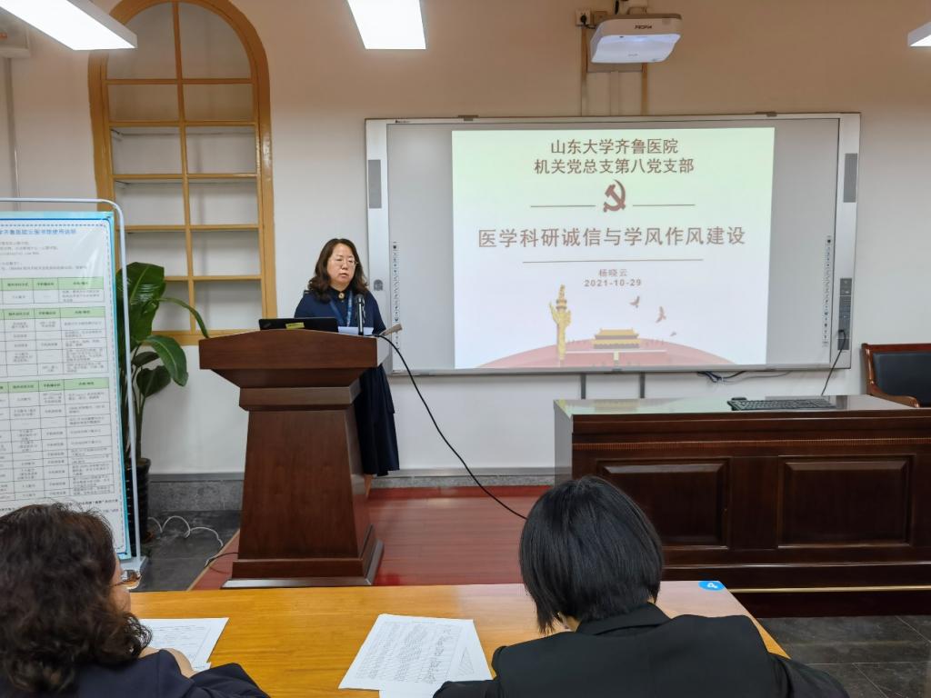 会上,杨晓云传达了进行医学科研诚信与学风作风建设的主题党日活动活动通知,领学了《关于进一步加强科研诚信建设的若干意见》等学习材料。她指出,科研诚信是科技创新的基石,作为科技计划管理部门及项目承担单位,科研处将严格按照科技计划组织实施的特点,对承担或参与科技计划项目的科研人员有效开展科研诚信教育,以优化科技创新环境为目标,以推进科研诚信建设制度化为重点,着力打造共建共享共治的科研诚信建设新格局。